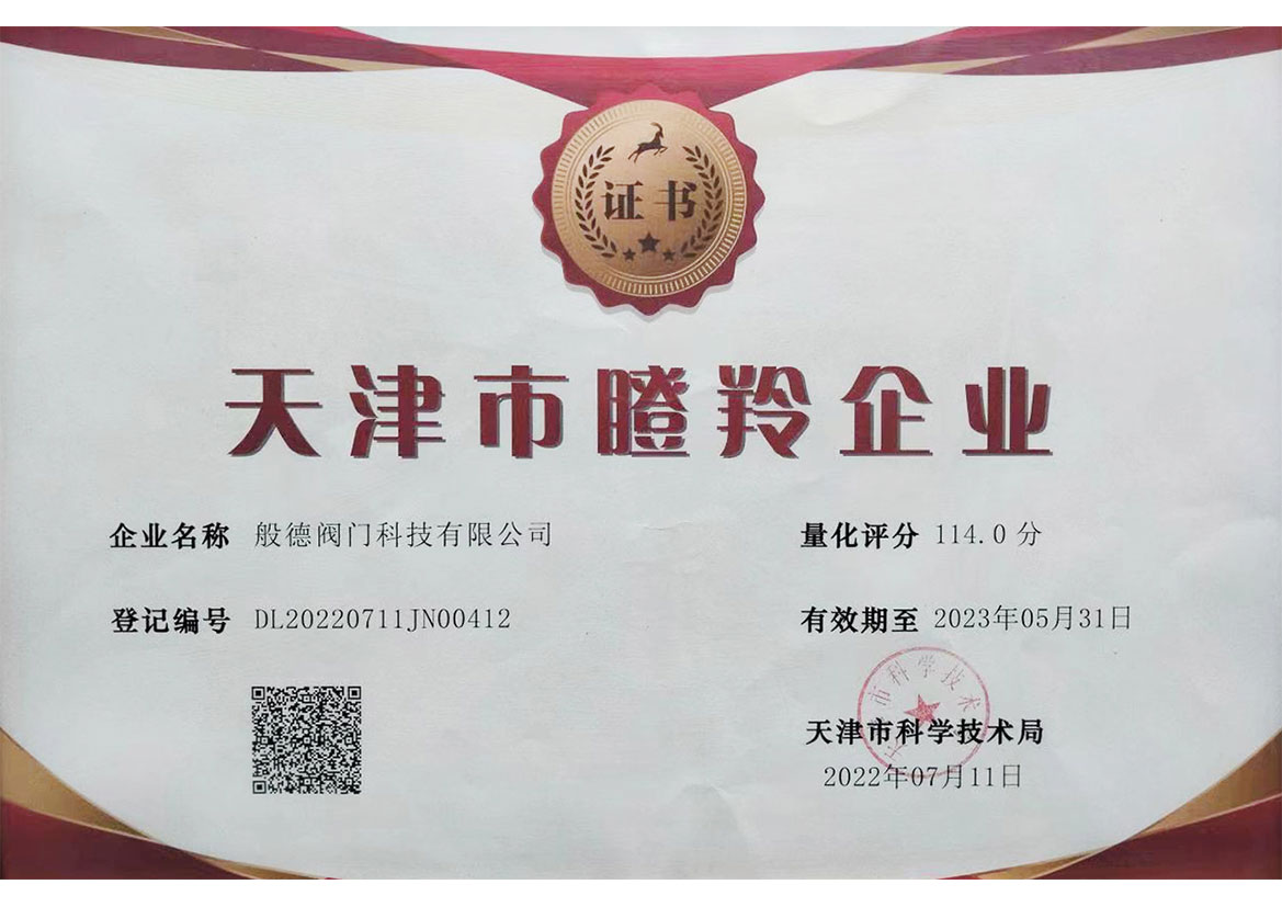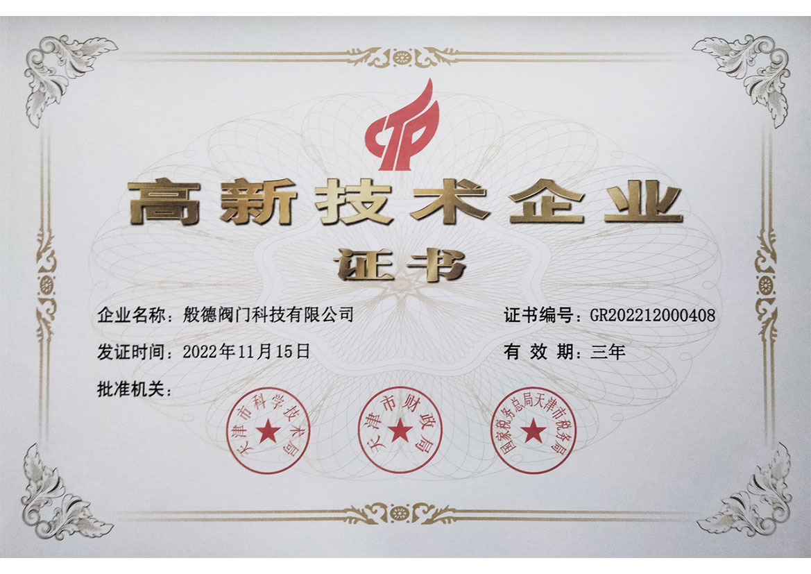 - 般德閥門(mén) 高新技術(shù)企業(yè)證書(shū)>>查看證書(shū)