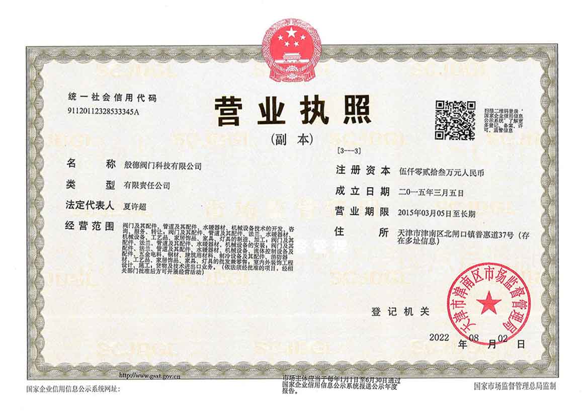 - 般德閥門(mén) 營(yíng)業(yè)執(zhí)照>>查看證書(shū)