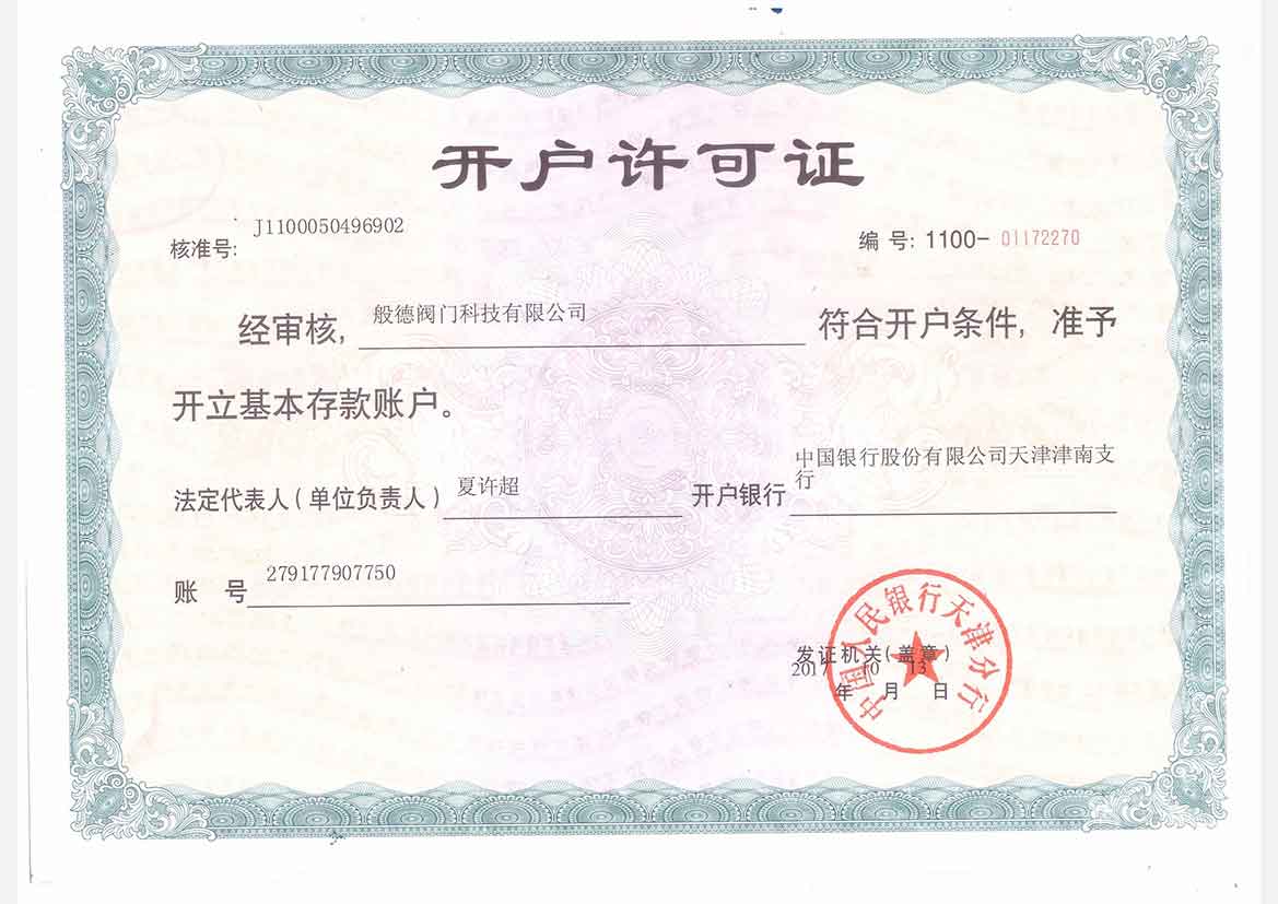 - 般德閥門(mén) 開(kāi)戶許可證>>查看證書(shū)
