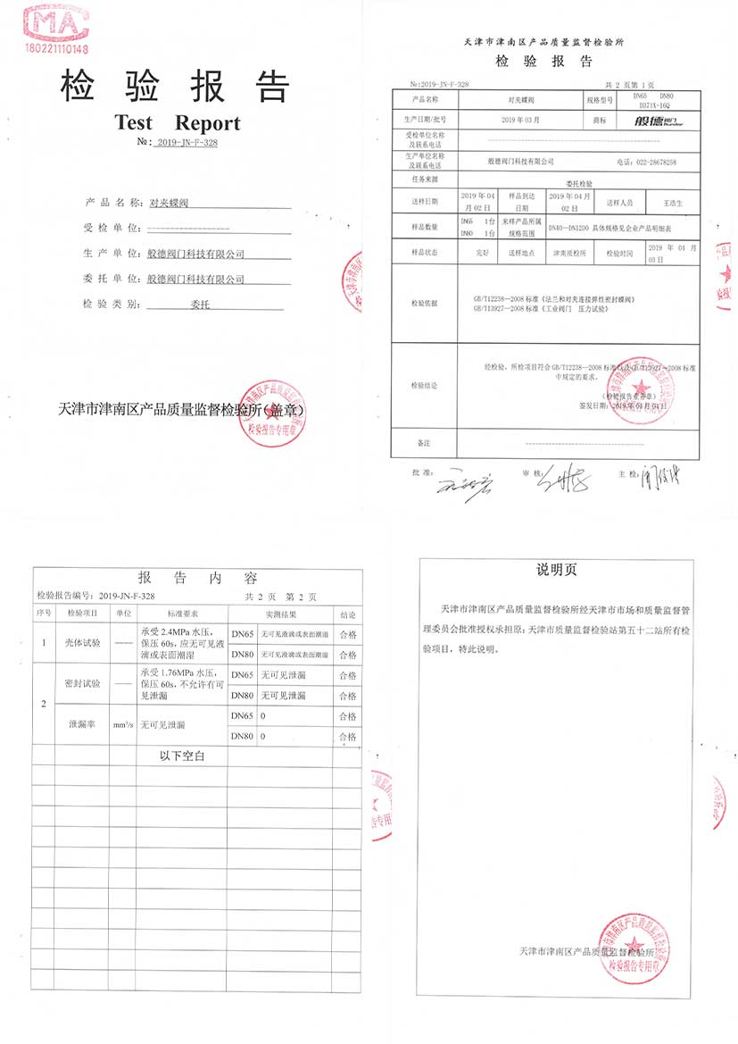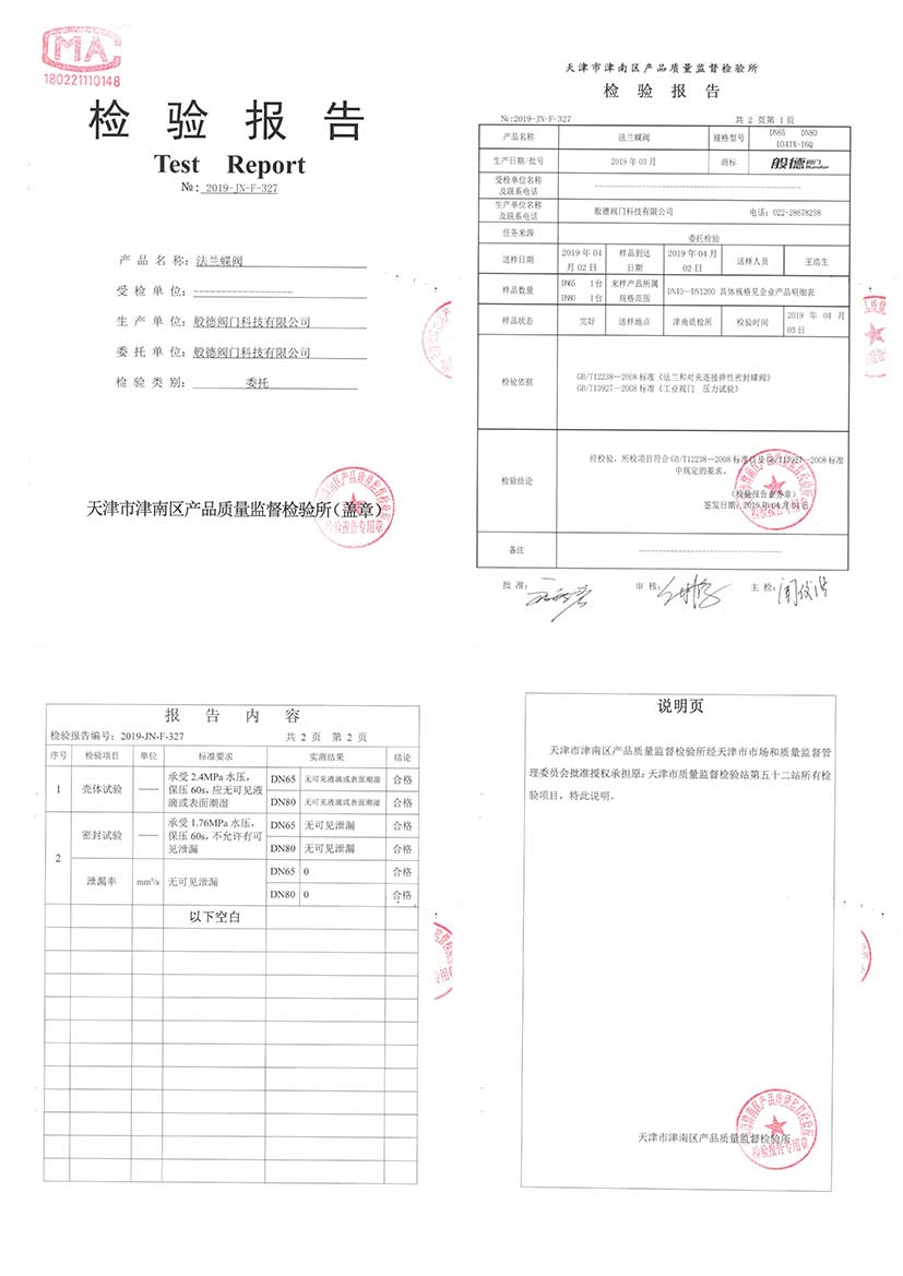 - 法蘭蝶閥檢測(cè)報(bào)告>>查看證書(shū)