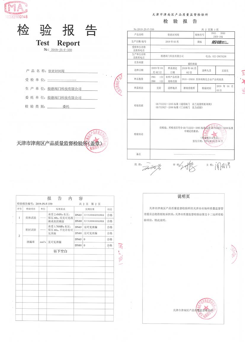 - 軟密封閘閥檢測(cè)報(bào)告>>查看證書(shū)