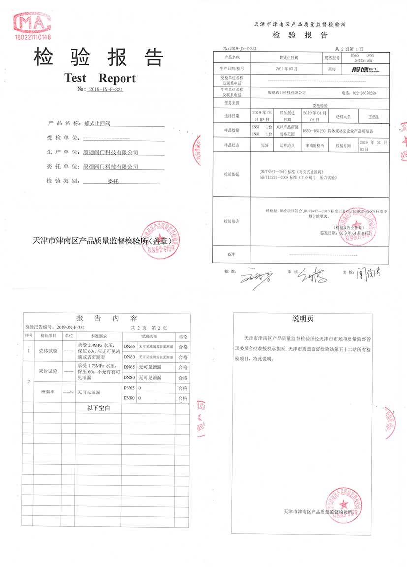 - 蝶式止回閥檢測(cè)報(bào)告>>查看證書(shū)