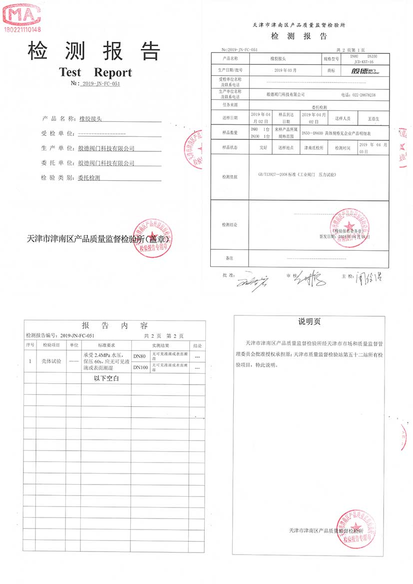 - 橡膠接頭檢測(cè)報(bào)告>>查看證書(shū)