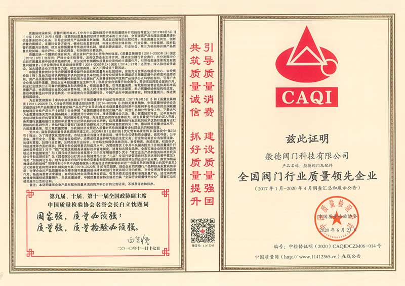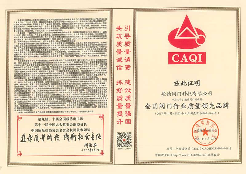 - 全國(guó)閥門(mén)行業(yè)質(zhì)量領(lǐng)先品牌>>查看證書(shū)