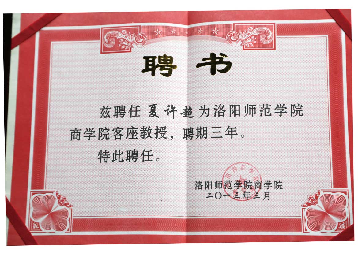 - 洛陽(yáng)師范學(xué)院客座教授>>查看證書(shū)