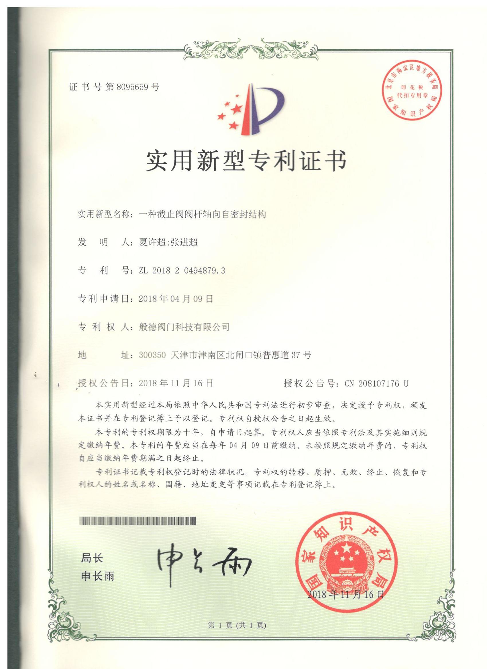 - 專(zhuān)利-一種截止閥閥桿軸向自密封結(jié)構(gòu)>>查看證書(shū)