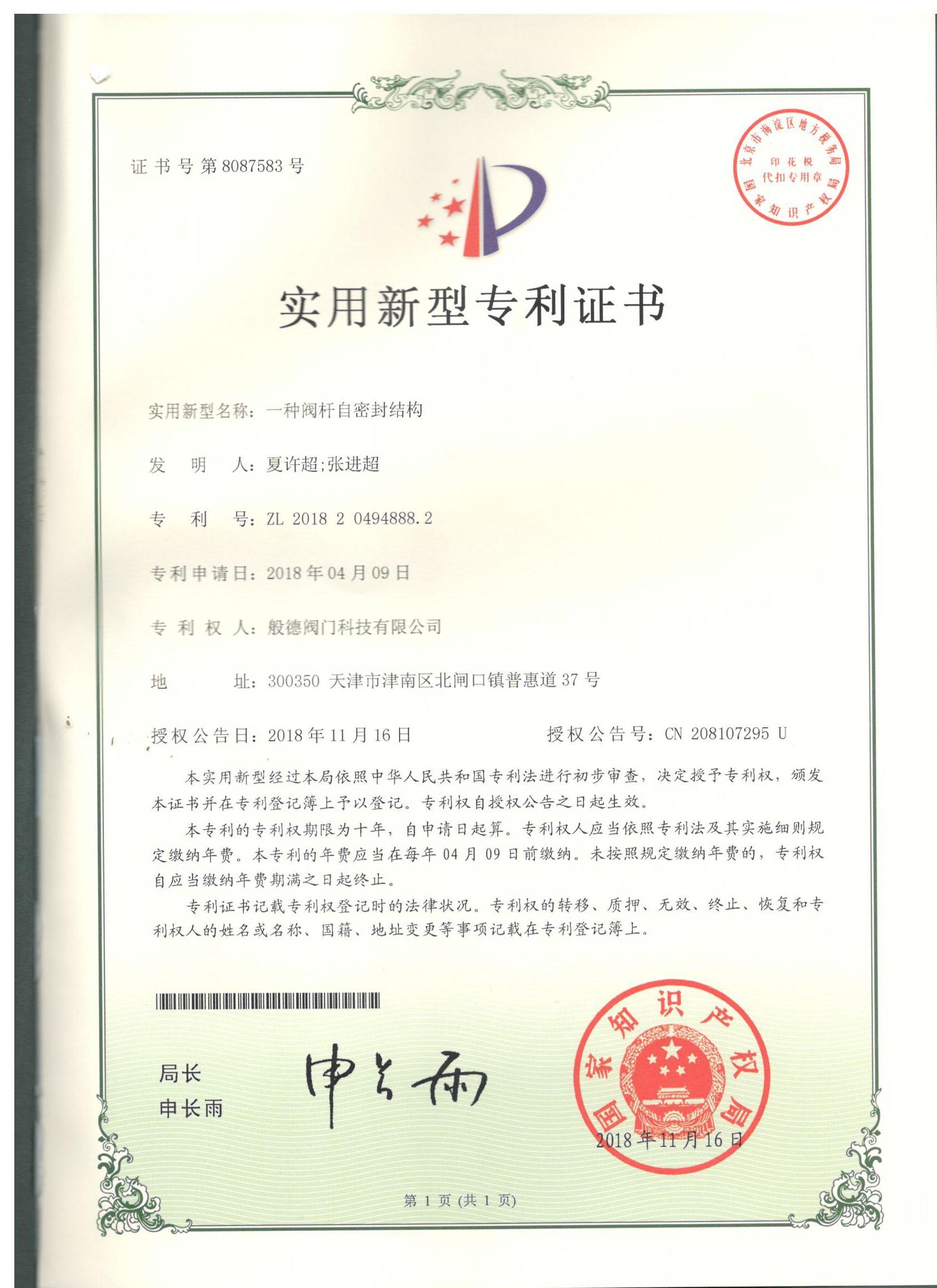 - 專(zhuān)利-一種閥桿自密封結(jié)構(gòu)>>查看證書(shū)