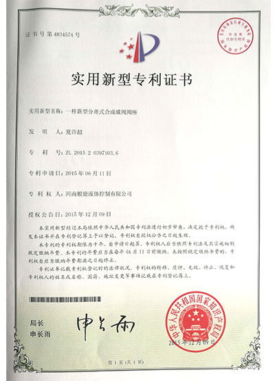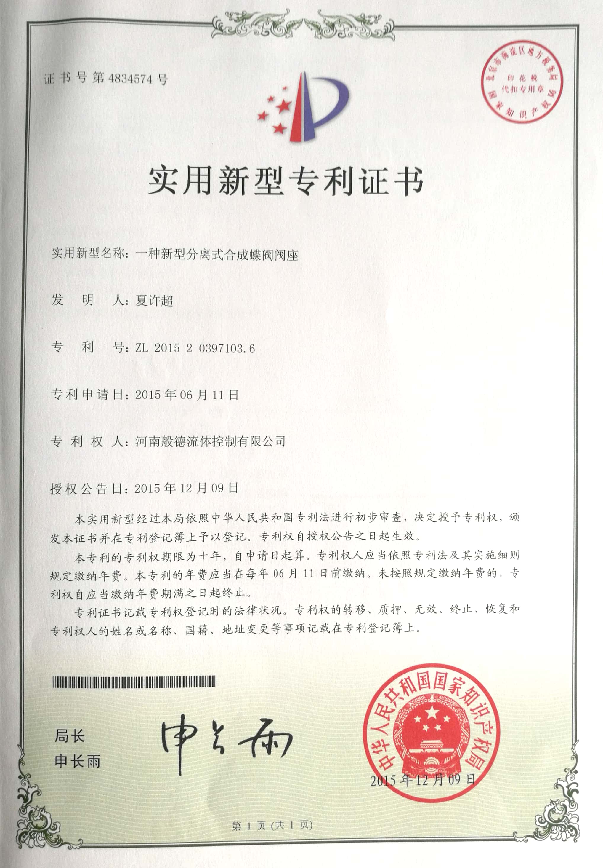 - 專(zhuān)利-一種新型分離式合成蝶閥閥座>>查看證書(shū)