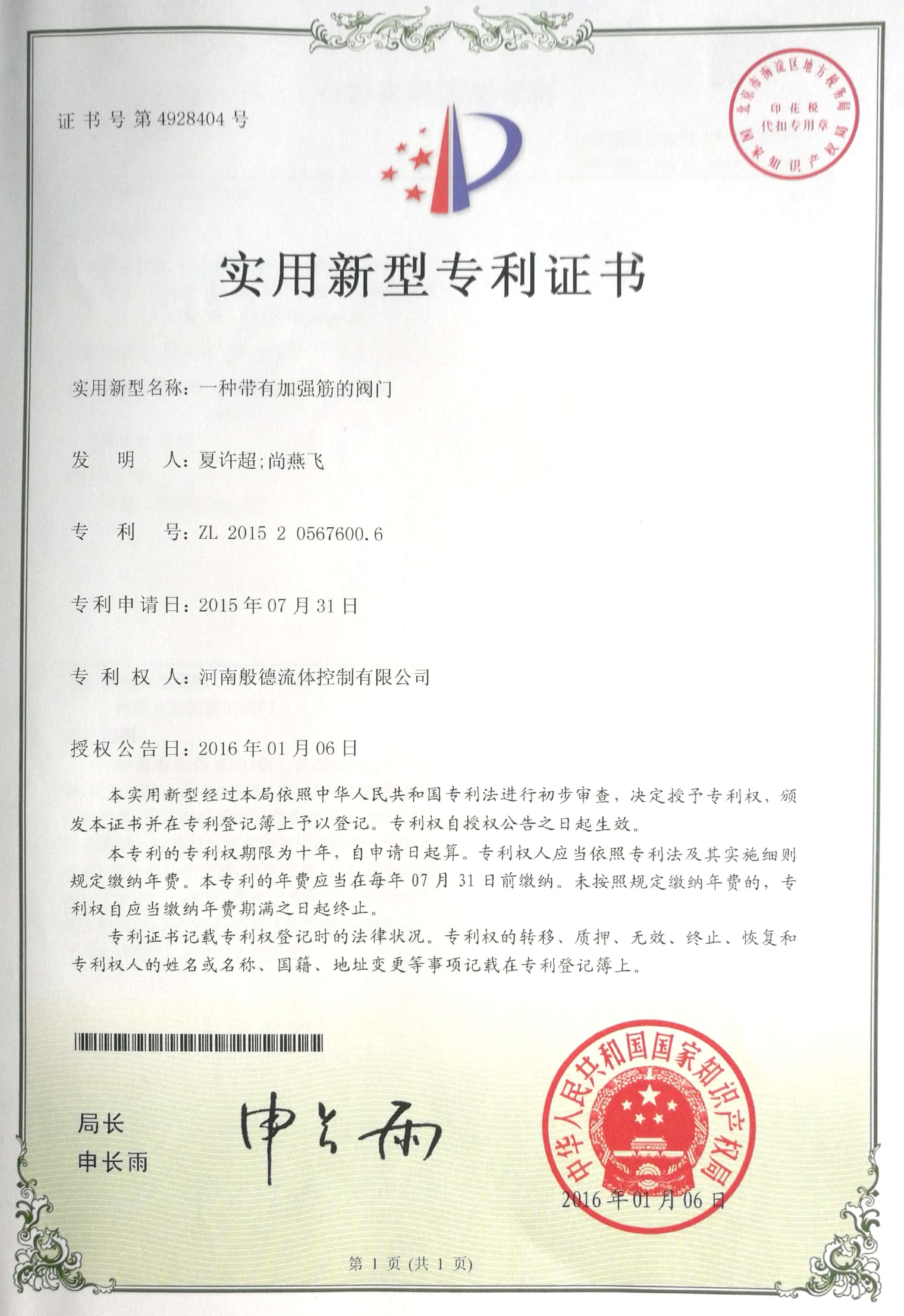 - 專(zhuān)利-一種帶有加強(qiáng)筋的閥門(mén)>>查看證書(shū)