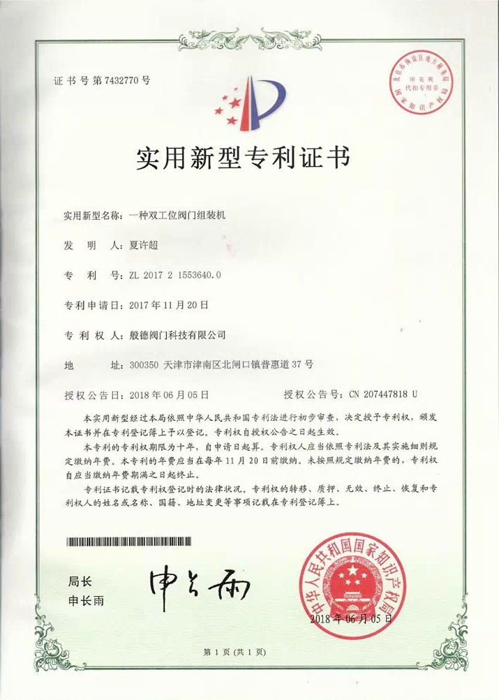 - 專(zhuān)利-一種雙工位閥門(mén)組裝機(jī)>>查看證書(shū)