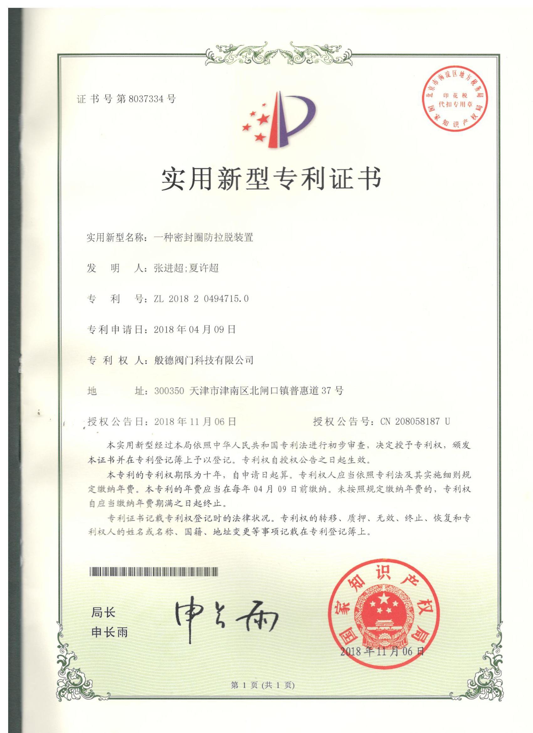 - 專(zhuān)利-一種密封圈防拉脫裝置>>查看證書(shū)