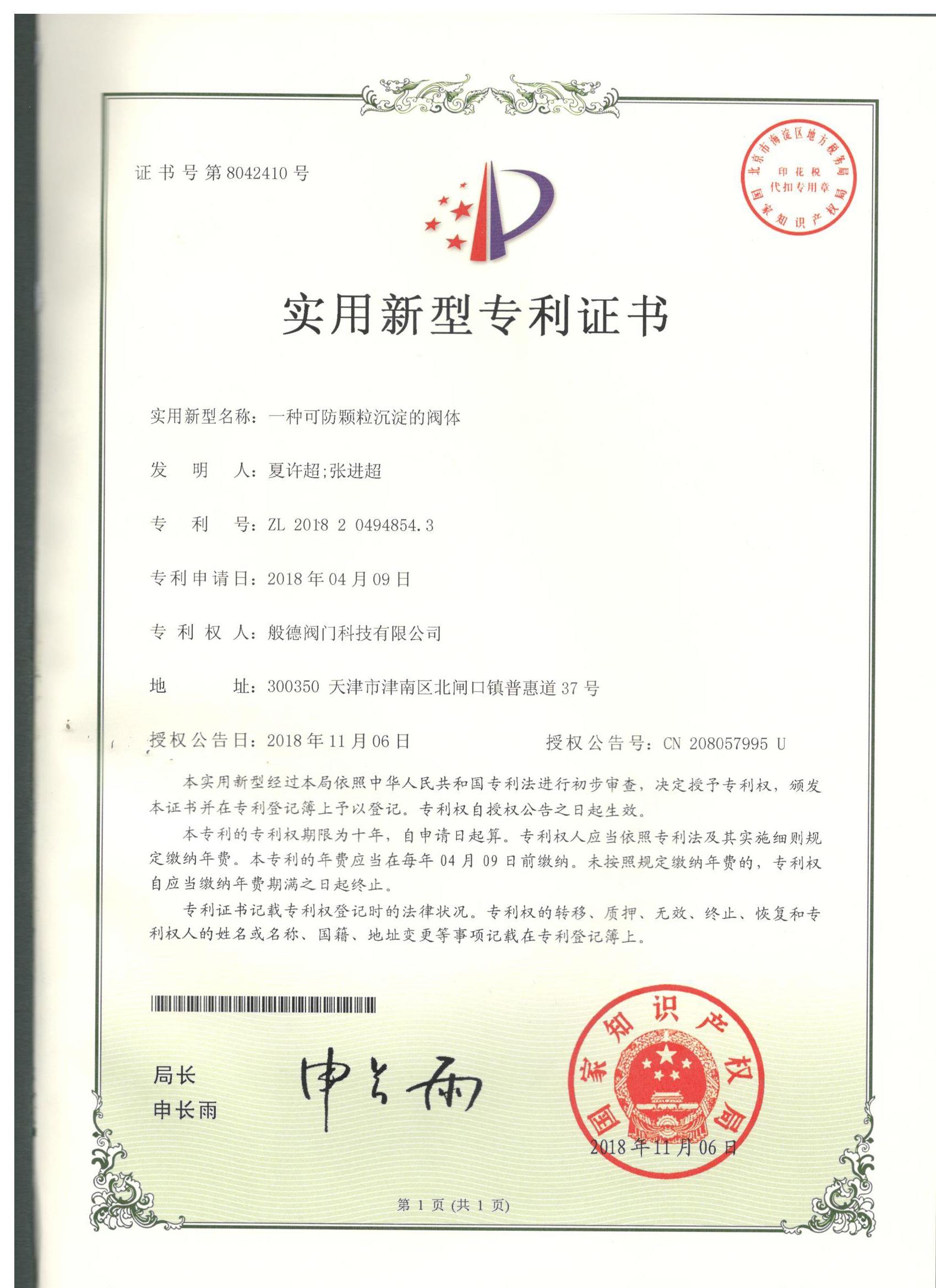 - 專(zhuān)利-一種可防顆粒沉淀的閥體>>查看證書(shū)