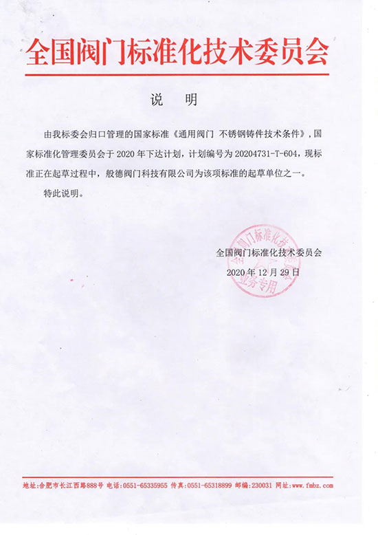 圖|般德閥門是《通用閥門 不銹鋼鑄件技術(shù)條件》標(biāo)準(zhǔn)的起草單位之一