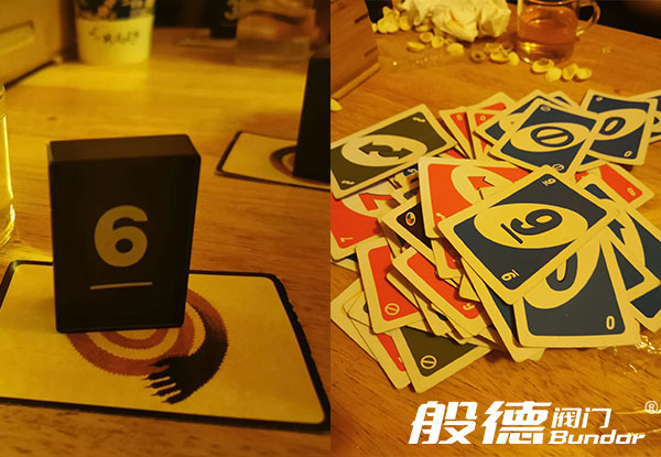 幾局刺激的狼人殺過后,大家開始玩“UNO”,這是一個新的桌游,工作人員為大家講了游戲規(guī)則之后,大家就開始自由“廝殺”,看誰手里的牌先出完,眼看著手里只剩一張牌了,轉(zhuǎn)眼又成了一把,大家笑聲連連,一局游戲玩了半個多小時才結(jié)束。