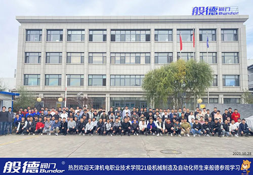 2021年10月28日,天津機(jī)電職業(yè)技術(shù)學(xué)院21級機(jī)械制造及自動化師生共122人,來到般德閥門天津工廠參觀學(xué)習(xí)。