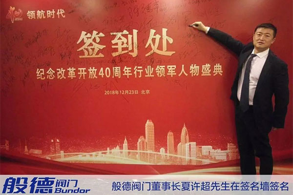2018年12月23日,般德閥門董事長夏許超先生受邀參加由中國管理科學研究院區(qū)域改革發(fā)展研究所、《商業(yè)觀察》雜志社、中國電子商務協(xié)會品牌案例研究院決定聯(lián)合舉辦的“領(lǐng)航時代——紀念改革開放 40 周年行業(yè)領(lǐng)軍人物盛典暨信用與品牌建設成就巡禮”,參加此次盛典的主要有全國人大、全國政協(xié)、國家有關(guān)部委領(lǐng)導、著名經(jīng)濟學家、商界領(lǐng)袖、行業(yè)大咖、品牌專家、誠信企業(yè)家以及來自各行業(yè)杰出代表。