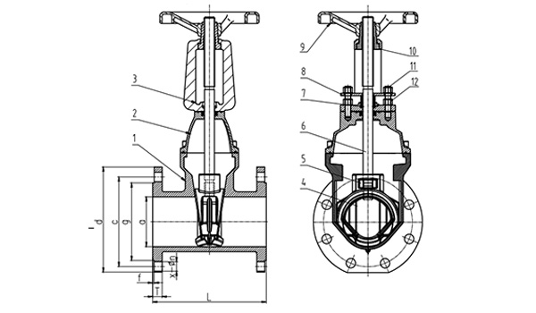 軟密封閘閥型號:Z41X-16Q。尺寸圖及對應(yīng)尺寸如下: