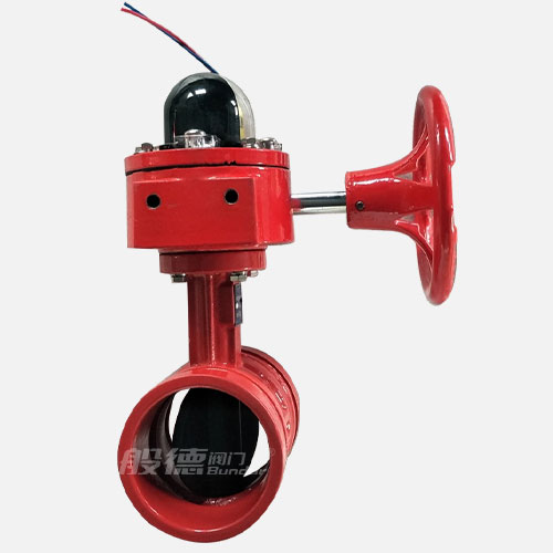 信號溝槽蝶閥采用蝸輪、蝸桿傳動,隨著凸輪轉動按預定位置將信號裝置上觸頭壓下或放開,相應輸出"通""斷"電信號,顯示蝶閥的啟閉狀態(tài)。